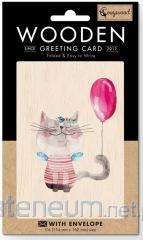 Karnet drewniany C6 + koperta Kot z balonem