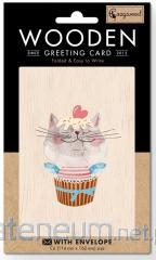 Karnet drewniany C6 + koperta Kot z sercem