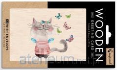 Karnet drewniany C6 + koperta Kot i motyle