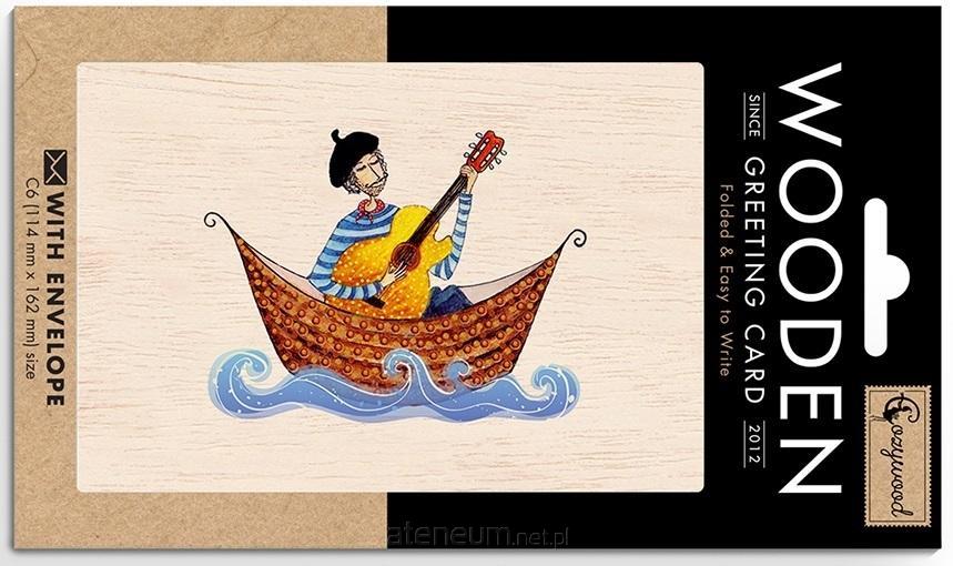 Karnet drewniany C6 + koperta Kobieta na balonie