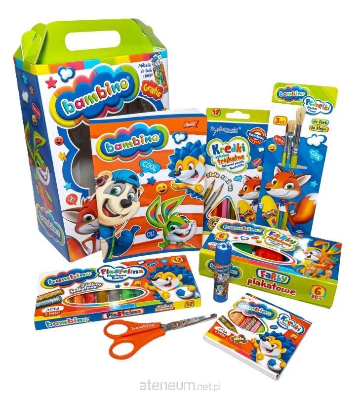 Rewelacyjny zestaw upominkowy Bambino został specjalnie stworzony dla małego artysty. Każde dziecko znajdzie w nim najpotrzebniejsze artykuły do wykonania różnorodnych prac plastycznych począwszy od kredek, farb, plasteliny.