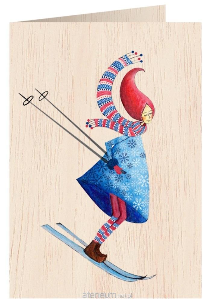 Karnet drewniany C6 + koperta Święta Kobieta Sanki