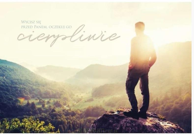 Kartka składana z kopertą.Kartka zawiera tekst:Wycisz się przed Panem, oczekuj Go cierpliwie.Kartka, w której możesz wpisać dowolny tekst lub życzenia na dowolną okazję.
