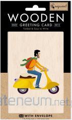 Karnet drewniany C6 + koperta Mężczyzna skuter
