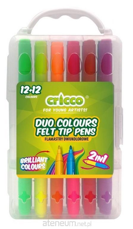 - zestaw 12 pisaków dwustronnych - każda strona w innym kolorze - model zezwala na posiadanie aż 24 kolorów w niewielkim opakowaniu albo piórniku - żywe, intensywne odcienie - trójkątna poręczna obudowa gwarantuje wygodne kolorowanie - ergonomiczne, twarde pudełko z przegródkami i rączką może służyć jako piórnik do przechowywania
