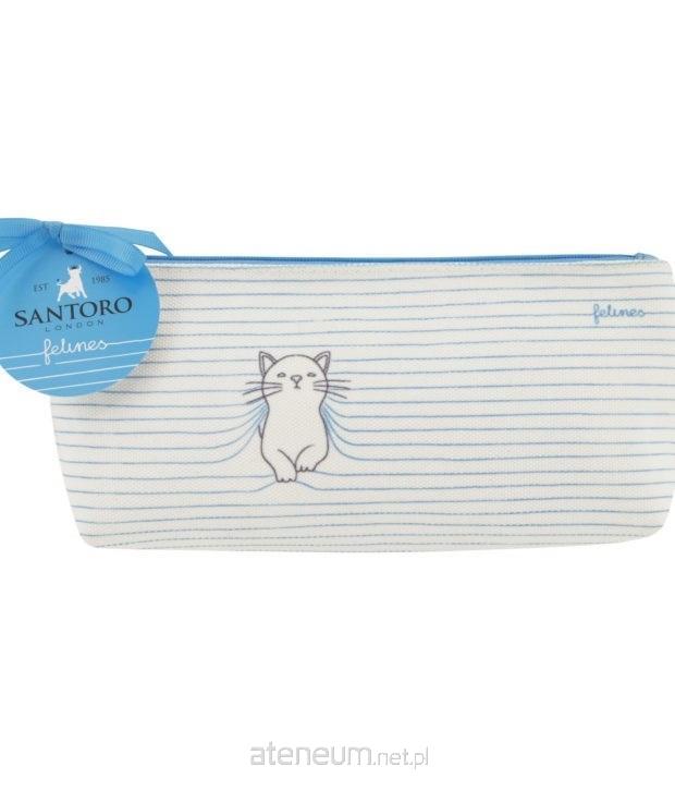 Szczegółowy z prostymi poziomymi liniami w delikatnej palecie jasnoniebieskich kolorów, futerał z grafiką Purrrfect Place z przodu, ze współczesnym prążkowanym nadrukiem z tyłu.