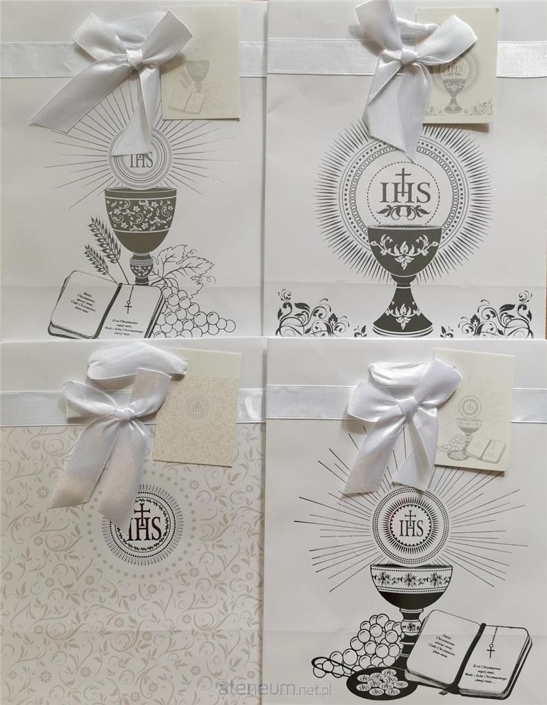 Torebka ozdobna z kokardą Komunia PL-2k, mix wzorów, wzór wysyłany losowo.