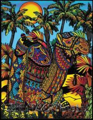 Wypukłe linie ułatwiają nie wychodzenie za linie, a na głębokiej matowej czerni nie widać drobnych potknięć przy kolorowaniu. Welwet nałożony jest na papier przyklejony do sztywnej tektury, dzięki czemu obraz nie wymaga ramki jeśli zdecydujemy się go powiesić na ścianie.
