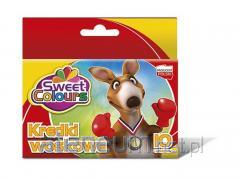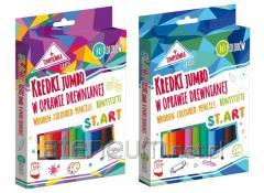 Cechy produktu: - w samoprzylepnej etykiecie wykonanej z błyszczącego papieru - produkt polski - wysoka jakość - wykonane z glinki kaolinowej - intensywne, żywe kolory - doskonałe krycie powierzchni - łatwo przywierające do podłoża Specyfikacja: - ilość kolorów w opakowaniu 12 - długość kredki - 8 cm - średnica 6 mm