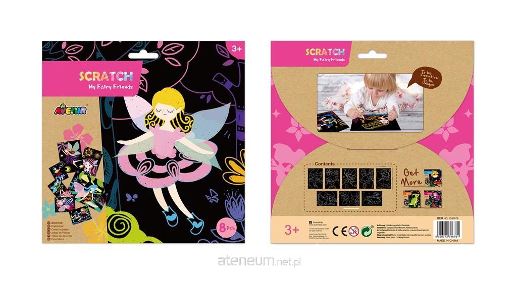 Avenir Scratch to zupełnie nowe podejście do prac ręcznych. Wyjątkowy arkusz, na którym tworzy się poprzez zdrapywanie warstwy wierzchniej, by odsłonić wielobarwną warstwę spodnią. Zabawka kreatywna najwyższych lotów, pozwalająca nie tylko tworzyć piękne prace, ale także dająca doświadczenia sensoryczne - dzięki użyciu odpowiedniego narzędzia i zachowywania się papieru podczas zabawy dziecko odbiera nowe wrażenia dotykowe. W zestawie są arkusze (8 szt.) do zdrapywania z liniami pomocniczymi oraz patyczek do zdrapywania. Dla dzieci powyżej 3. roku życia. Opakowanie: 23 x 23 cm.