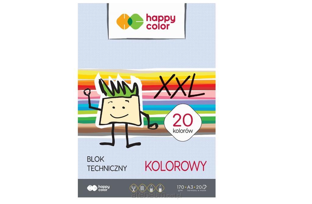 Blok techniczny kolorowy A3, 170g, 20 ark (20 kolorów), Happy Color, wysokiej jakości papier barwiony w masie, nie zmienia koloru podczas malowania i wymazywania. Bezkwasowy o gładzonej powierzchni. idealny do wycinanek, rysowania, składania. Daje kolorowe krawędzie przy wycinaniu i składaniu.