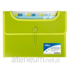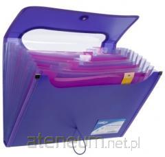 Wykonana z mocnego polipropylenu o grubości 0,6 mm, obszytego taśmą kaletniczą. Z rączką, zamykana nazamek. Zawiera 12 przegródek dostosowanych do dokumentów formatu A4 oraz przekładki indeksujące. Wymiary: 330 x 240 x 35 mm. Pakowana pojedynczo w woreczek foliowy.