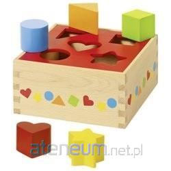 Klasyczny sorter do nauki rozróżniania kształtów. Do drewnianej skrzynki należy wrzucić przez wieczko 5 klocków o różnych kształtach i kolorach.Wciągająca zabawa już dla rocznych maluszków!