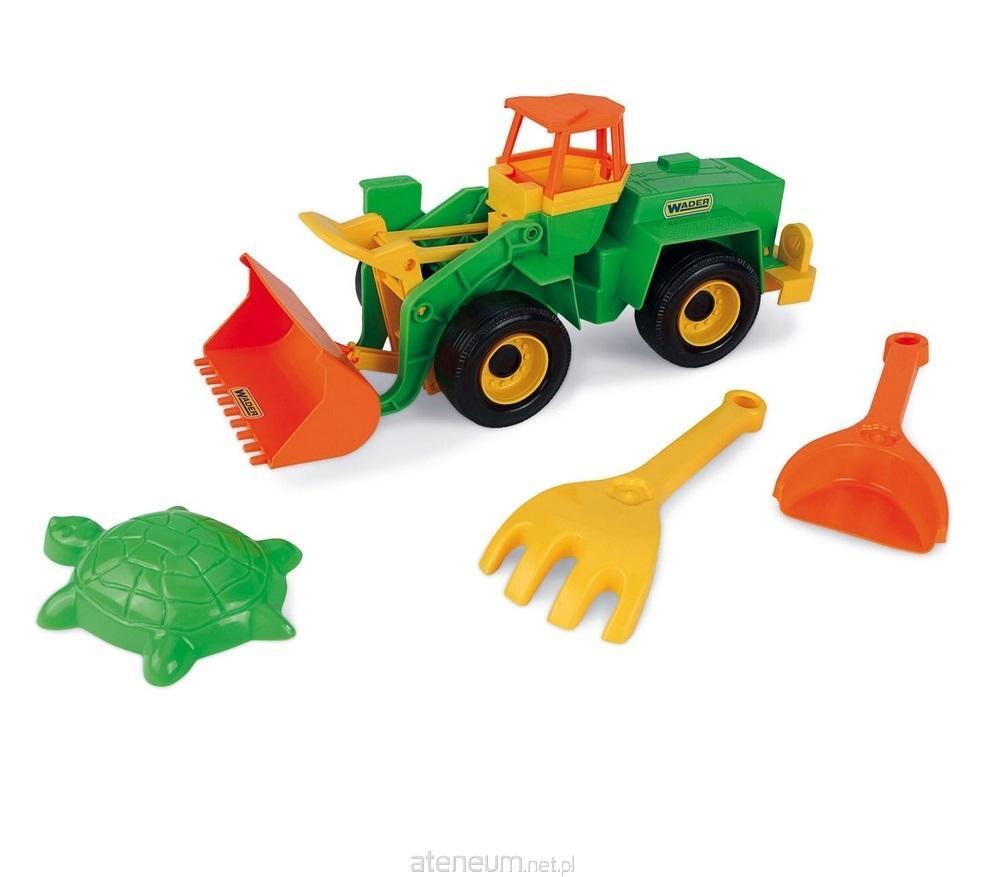36-centymetrowa ładowarka, posiada ruchomą łyżkę. W zestawie z łopatką, grabiami, foremką.
