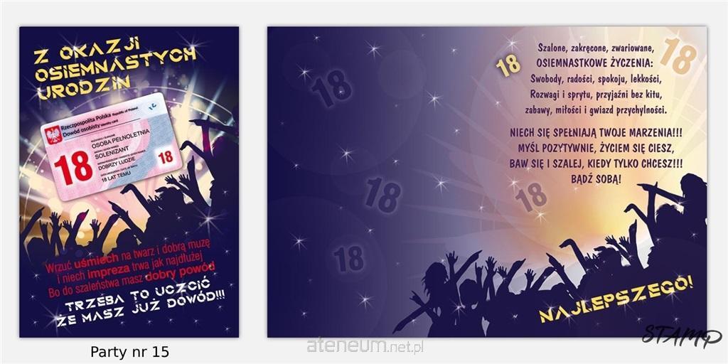 Karnet Party B6 + koperta wzór nr 26 Urodziny 18