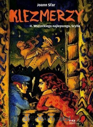 I znowu tutaj! Wracamy do Odessy gwiaździstą nocą. Otwarte okna wytwornej kamienicy pozwalają żydowskiej muzyce rozlać się po uśpionych uliczkach. Skorzystajmy z tej dziwnej uroczystości. Zapamiętajmy na długo tę cudowną noc, ponieważ w tym czasie nasi muzycy naprawdę zostali przyjaciółmi. No Davidovitch, Baron Tyłka Swego i towarzyszący mu muzycy Hava, Yaakov, Vincenzo, Tchokola wracają w drugim tomie niezwykłej opowieści Joanna Sfara Klezmerzy. Wszystkiego najlepszego, Scyllo! Twórca słynnego Kota rabina tym razem umieszcza akcję przed II wojną światową w Europie Wschodniej. W brawurowym stylu snuje barwną, zabawną i wzruszającą opowieść o muzykach, którzy wędrują od jednego sztetla do drugiego. Nie bacząc na przeciwności losu, szukają kolejnego wesela, bar micwy bądź zwykłej popijawy, by grać i zarobić trochę grosza. Sfar czerpiąc z opowiadań Isaaca Bashevisa Singera, żydowskich podań, a także z malarstwa Marca Chagalla, nie tylko odtwarza atmosferę świata, który już nie istnieje, ale także nieustannie zaskakuje. Jego Klezmerzy to komiks jednocześnie zabawny i pełen tragicznych wydarzeń, optymistyczny i smutny, czuły i okrutny. Jest tylko jeden twórca, który z takiej szalonej mozaiki nastrojów jest w stanie stworzyć spójną i wciągającą bez reszty opowieść. Jest nim Joann Sfar.