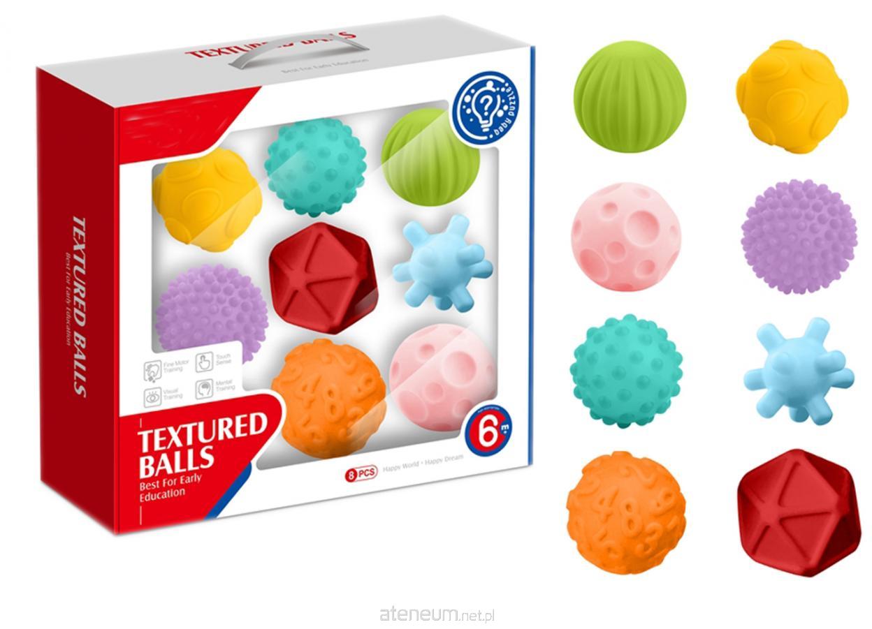 Zestaw 8 piłek sensorycznych to gwarant dobrej rozwojowej zabawy dla każdego niemowlaka.Każda piłka ma inną fakturę i kolorystykę, co zapewnia różnorodność bodźców dla zmysłów dziecka. Doskonałe do rzucania, toczenia, ściskania, a nawet żucia - BEZPIECZNE - nie zawierają FTALANÓW Zabawka przeznaczona dla dzieci w wieku od 6 m-cy