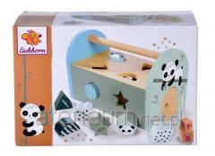 Dziecko poprzez zabawę uczy się kolorów i kolorów oraz uczy się dopasować poszczególne klocki do otworów w zamknięciu pudełka.
