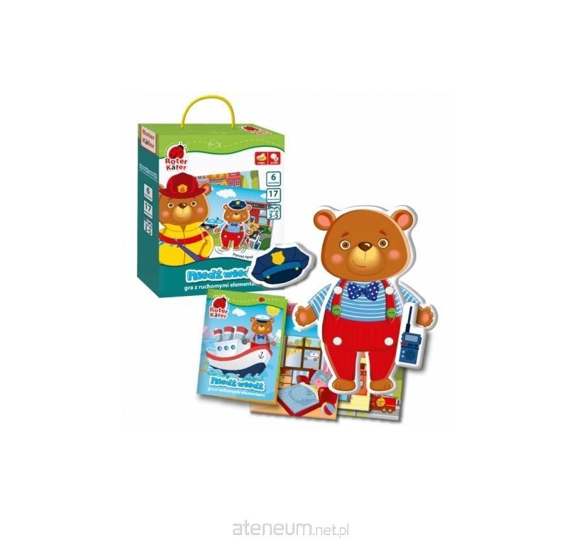 Przyjacielu, zbierz z elementów niedźwiadka! Porusz rączkami i nóżkami! Kim dziś będzie u Ciebie?... Sam zdecyduj! Gra trenuje drobną motorykę, logiczne myślenie i pamięć. Zestaw: 5 kartonowych elementów z guzikami, 12 kartonowych elementów, 14 rzepów, 6 kartek, instrukcja.