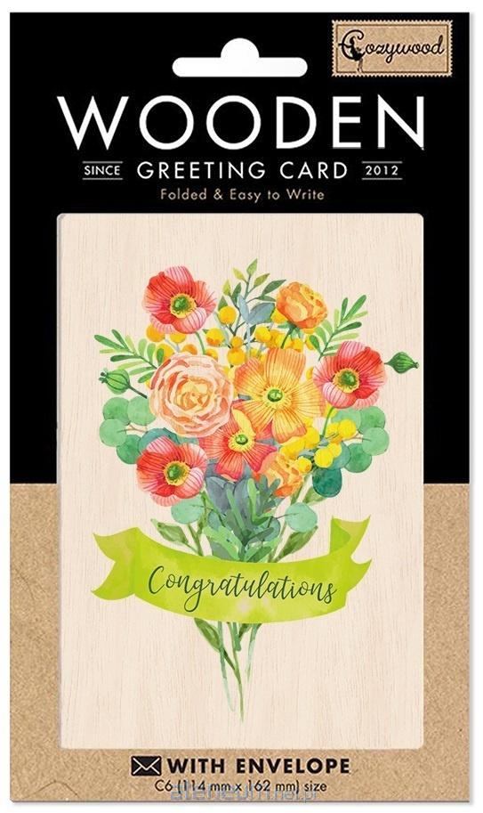 Karnet drewniany C6 + koperta Bukiet z kotami