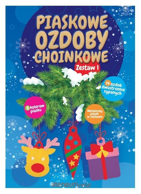 Kreatywna zabawa dla dzieci polegająca na malowaniu PIASKIEM !Odklej, posyp, stwórz ! opakowanie: tekturaPiaskowe OZDOBY CHOINKOWE to kreatywna zabawa dla dzieci, polegająca na tworzeniu barwnych ilustracji z piasku. Każdy zestaw zawiera trzy obrazki, woreczki z kolorowym piaskiem oraz patyczek, za pomocą którego odkrywamy klejącą warstwę ilustracji. Przy tej zabawie wyobraźnia nie zna granic!Pakiet "PIASKOWE OZDOBY CHOINKOWE" zawiera:- 14 ozdób dwustronnie sypanych- 8 kolorów piasku- metaliczny piasek w zestawie