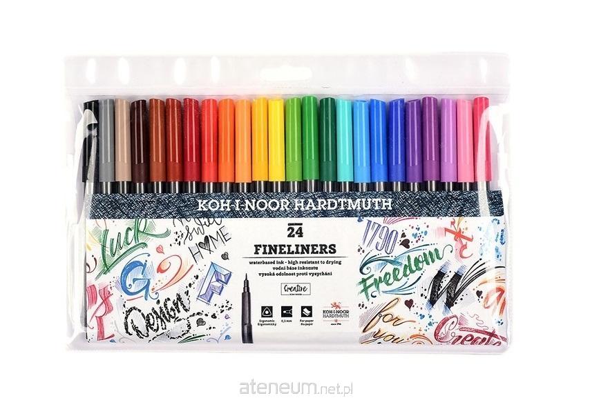 Cienkopisy przeznaczone głównie do pisania, szkicowania i rysowania na papierze. Zestaw 24 kolorów. Ze względu na ergonomiczny, trójboczny kształt są wygodne w użytkowaniu. Zawierają tusz na bazie wody, są spieralne z większości tkanin. Posiadają końcówkę o grubości 0,3mm, która dzięki specjalnej technologii tuszu nie zasycha przez dłuższy czas bez skuwki. Świetnie sprawdza się przy wymagających precyzji zadaniach, jako narzędzie do ozdabiania tekstu oraz robienia notatek. Zostały wyprodukowane zgodnie z europejskimi normami bezpieczeństwa na terenie Unii Europejskiej.