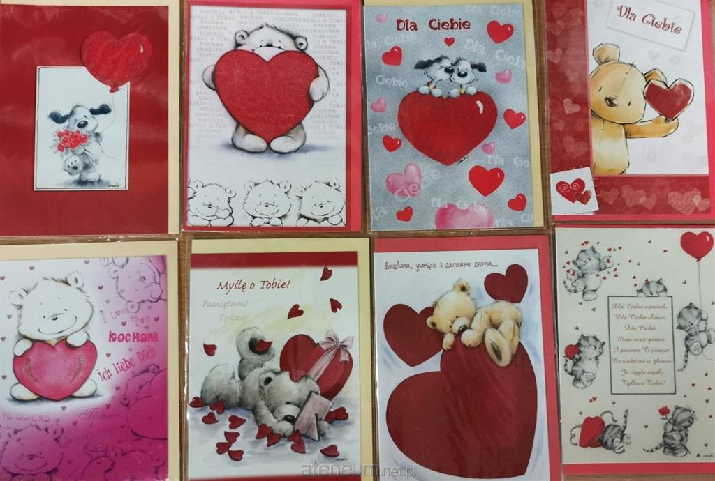 Karnet Walentynki B6 brokat + koperta Panorama. Mix wzorów, wzór wysyłany losowo.