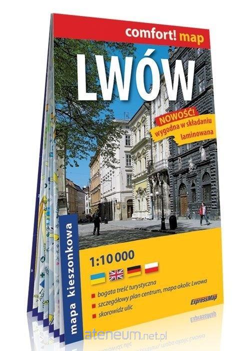 Lwów laminowany plan miasta kieszonkowy. Spacer po pełnym reprezentacyjnych kamienic Rynku Głównym, wizyta w katedrze Łacińskiej, zaduma na cmentarzach Łyczakowskim i Orląt. Zakupy na słynnym bazarze Krakowskim i podziwianie panoramy miasta z kopca Unii Lubelskiej. Dwustronnie laminowany, wygodny w składaniu kieszonkowy plan interesujących dla turysty, centralnych dzielnic w szczegółowej skali 1:10 000 (1 cm 100 m) pomoże odnaleźć atrakcje Lwowa. Na planie: bogata treść turystyczna, m.in.: zabytki, muzea, hotele i inne istotne obiekty, linie tramwajowe i trolejbusowe z przystankami, linie marszrutek, plan zabytkowego centrum Lwowa w bardziej szczegółowej skali, mapa okolic Lwowa, tabela transkrypcji alfabetu ukraińskiego, skorowidz ulic.