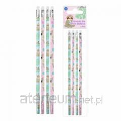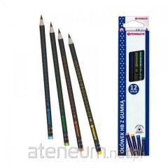 Opakowanie zbiorcze 12 szt Ołówki Black'Peps Pastel o twardości HB. Wykonane z drewna lipowego. Gumka w kolorze białym. Trójkątny przekrój. Grafit odporny na złamania. Dostępne w 3 kolorach pastelowych: turkusowym, koralowym i fioletowym z nadrukowanymi metalicznymi wzorami. w pudełku miks 3 kolorów.
