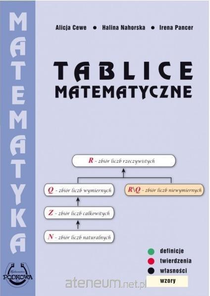Wydnie IV 2020 rok. W tym wydaniu wprowadzono międzynarodowe oznczenia zbiorów liczbowych oraz kwatyfiktorów. Treści zawarte w książce "Tablice Matematyczne" są przydatne dla uczniów szkół średnich oraz studentów. Aby ułatwić Czytelnikowi szybkie znalezienie potrzebnej informacji zostały wprowadzone następujące oznaczenia: zielona kropka oznacza definicje, czerwona kropka oznacza twierdzenia, czarna kropka oznacza własności, ważniejsze wzory umieszczono na żółtym tle. Działy matematyki wyróżniono kolorami: zielonym - algebra i analiza, różowym - geometria, błękitnym - rachunek prawdopodobieństwa.