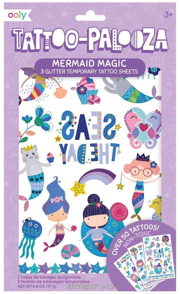 Tęczowe, energetyczne a momentami bardzo magiczne, pełne pozytywnej energii tatuaże w wersji całkowicie zmywalnej, dla najmłodszych zwolenników "obrazków na ciele". To prosty sposób na świetną zabawę. Idealne na wakacje. Zmywalne tatuaże Ooly Tattoo Palooza: w zestawie 3 arkusze pełne tatuaży - w sumie ponad 50 sztuk; wymiary jednego arkusza: 13x21cm; tatuaże są kolorowe i mają różne wzory i rozmiary; nie są trwałe, można je łatwo zmyć.