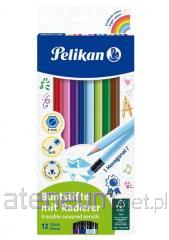Ścieralne kredki ołówkowe z gumkami, 12 kolorów.