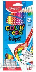 Kredki Colorpeps Oops trójkątne z gumką 12 kol