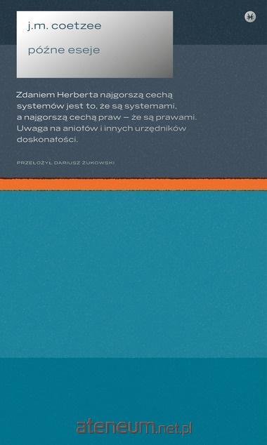 Najnowszy zbiór dwudziestu trzech esejów noblisty w którym znajdziemy teksty poświęcone autorom klasycznym, takim jak Goethe, Hlderlin czy Flaubert, oraz dwudziestowiecznym, jak Herbert, Nmirovsky czy Roth ukazuje nie tylko rozmach zainteresowań pisarza, lecz także pozwala określić jego stosunek do zagadnień, które nieraz wykraczają poza obszar literatury, jak to się dzieje choćby w tekście na temat południowoafrykańskiego pisarza Hendrika Witbooia. Nie dziwi też szczególna uwaga, jaką J.M. Coetzee poświęca autorom z Australii, gdzie od pewnego czasu mieszka są nimi Les Murray i Patrick White. Za prawdziwy majstersztyk trzeba jednak uznać eseje o Samuelu Becketcie, w których Coetzee nie dość, że daje pokaz krytyczno-literackiej sprawności, to jeszcze sam rzuca się w nurt Beckettowskiej prozy i pozwala się ponieść jej falom.