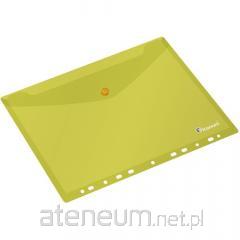 Koperta wykonana z kolorowego, transparentnego polipropylenu o grubości 0.18 mm. Zapinana na zatrzask. Europrofaracja umożliwia wpięcie teczki do segregatora, orientacja pozioma, wymiary 31,2x23,5 cm.