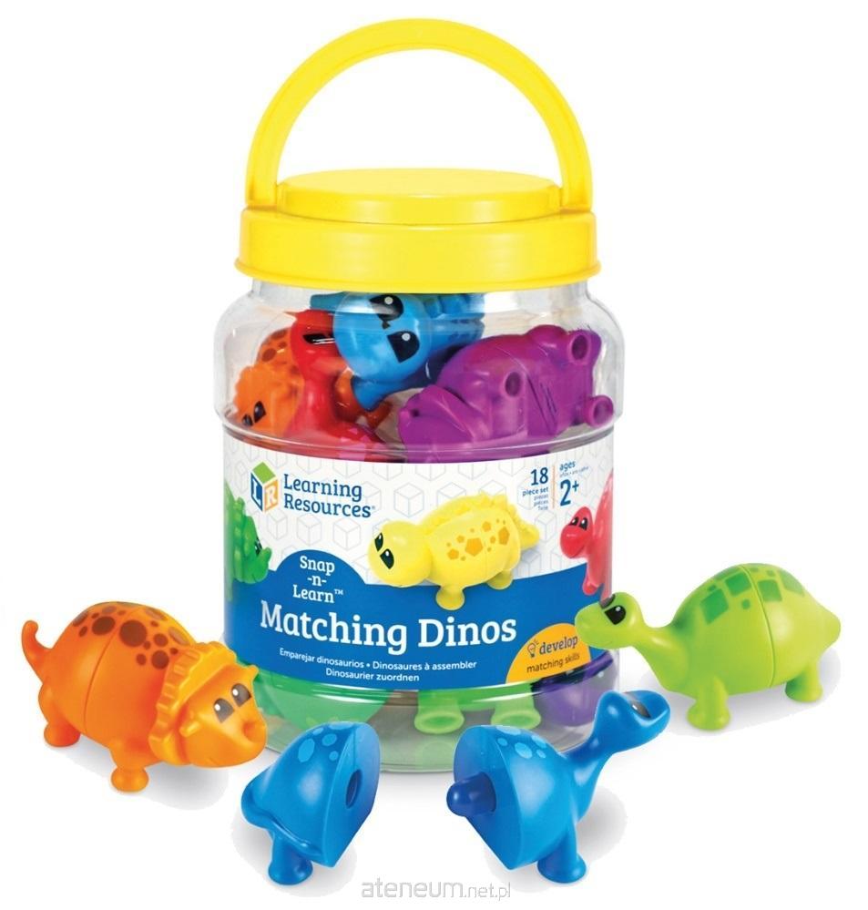 Dinozaury, Figurki do nauki liczenia, kolorów i kształtów. Nauka przez zabawę! Learning Resources® to producent bezpiecznych, edukacyjnych i innowacyjnych zabawek, któremu zaufali rodzice i nauczyciele na całym świecie. Learning Resources - tworzy zabawki edukacyjne, pomagające pokochać naukę. Zabawa w liczenie może być inspirująca. Zestaw edukacyjny do nauki liczenia, nazywania liczb, rozpoznawania kształtów i kolorów. Zachęcaj małe dzieci do szybkiego opanowania umiejętności wczesnego uczenia się dzięki tym kolorowym dwuczęściowym plastikowym dinozaurom. Każda figurka jest oznaczona unikalnym wzorem na głowie i plecach, który skłania maluchy do znalezienia dwóch pasujących do siebie części. Dzieci uczą się: Dopasowywania. Rozpoznawania kolorów: żółtego, pomarańczowego, czerwonego, jasno i ciemno niebieskiego, jasno i ciemno zielonego, jasno i ciemno fioletowego. Rozpoznawania kształtów. Doskonalenia umiejętności motorycznych. Koordynacji oko-ręka. Zestaw zawiera 18 elementów: 9 dwuczęściowych dinozaurów, po trzy z poniższych gatunków: Brachiozaur, Stegozaur, Triceratops. Zestaw wykonany z przyjaznego w dotyku tworzywa odpornego na pleśń. Cały zestaw mieści się w solidnym plastikowym słoju zamykanym pokrywą z praktycznym uchwytem.