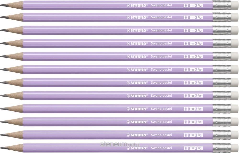 Opakowanie zbiorcze 12 sztuk. STABILO Swano Pastel - ołówek z gumką w kolorach pastelowych. Dla uczniów, studentów a także do biura. Twardość HB jest idealna do pisania, rysowania i szkicowania. Dostępny w 6 delikatnych, pastelowych kolorach do wyboru. Kolor lila.