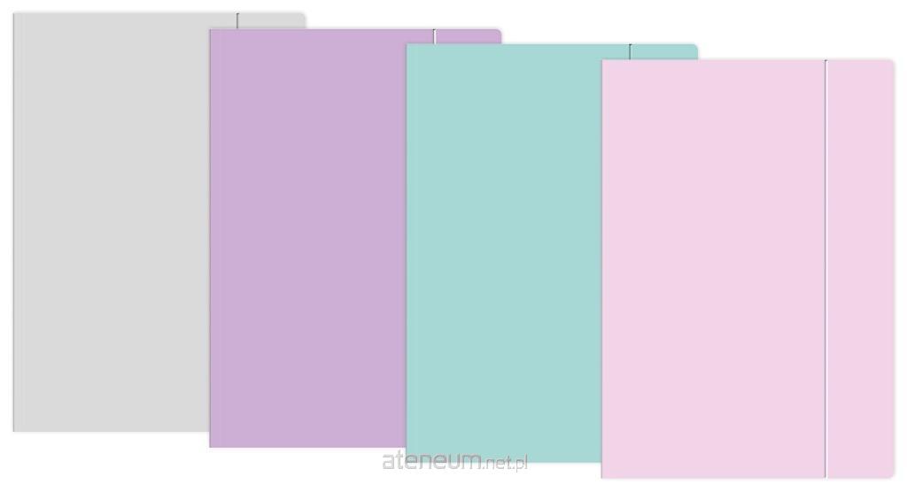 Format: A4+. Teczka dostępna w 4 pastelowych kolorach. Zamykana na gumkę w kolorze teczki. Doskonale chroni dokumenty. Wykonana z wysokiej jakości kartonu o gramaturze 300 g