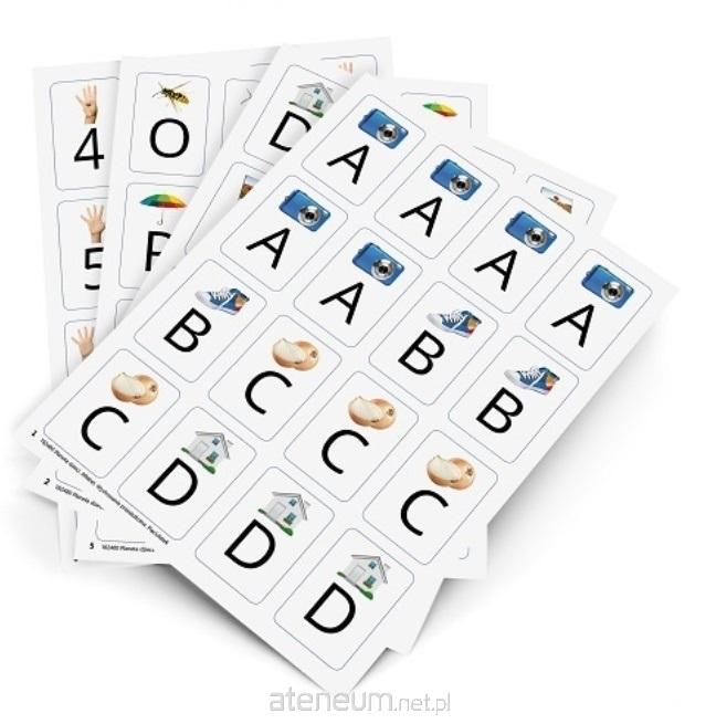 Zestaw kartoników z 24 podstawowymi wielkimi i małymi literami drukowanymi z