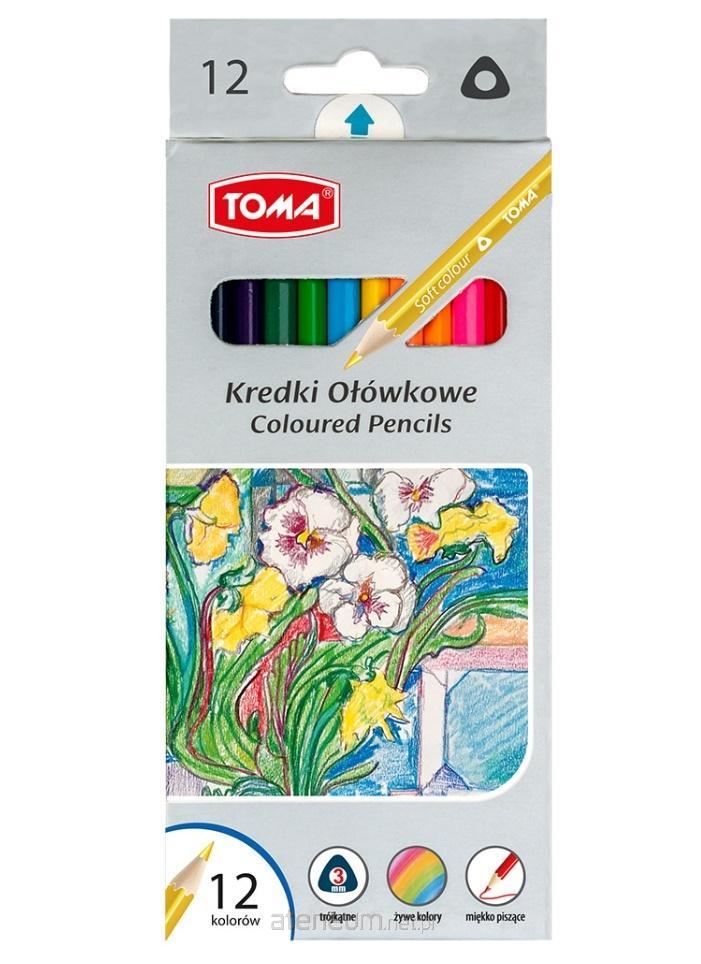 Kredki ołówkowe trójkątne 18 kolorów TOMA