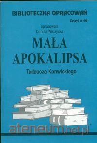 Biblioteczka Opracowań to seria wydawnicza prezentująca omówienia problemowe lektur szkolnych, adresowane do uczniów i nauczycieli szkół średnich i podstawowych. Pozwala na lepsze zrozumienie utworów literackich, dostrzeżenie walorów artystycznych, jest też wygodną pomocą w powtarzaniu wiadomości przed maturą. Opracowania powstały we współpracy historyków literatury i nauczycieli języka polskiego. Rys biograficzny autora Streszczenie powieści Mała apokalipsa wobec sytuacji w Polsce Czas i miejsce akcji Bohaterowie Obraz rzeczywistości PRL Degradacja świata przedstawionego Sytuacja polityczna Społeczeństwo wobec systemu Zagadnienia moralne Forma utworu Kompozycja Narracja Język powieści Warstwa symboli Mała apokalipsa - wyjaśnienie tytułu Przypisy Bibliografia