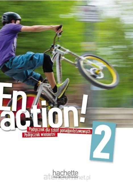 En Action 2 podręcznik wieloletni dla szkół ponadpodstawowych Podręcznik dopuszczony do użytku szkolnego w 4-letnim liceum i 5-letnim technikim. Nagrania audio mp3 do bezpłatnego pobrania ze strony En Action to nowoczesny kurs dla uczniów szkół ponadpodstawowych, rozpoczynających bądź kontynuujących naukę języka francuskiego. Opracowane dla współczesnego licealisty tematy, solidna baza gramatyczna i leksykalna zmotywują ucznia dla nauki języka i umożliwią mu przygotowanie się do egzaminu maturalnego, zarówno w części ustnej, jak i pisemnej. Szeroka gama nowoczesnych komponentów dydaktycznych dla ucznia i nauczyciela umożliwia dostosowanie kursu do potrzeb, zainteresowań i zaawansowania językowego grupy.