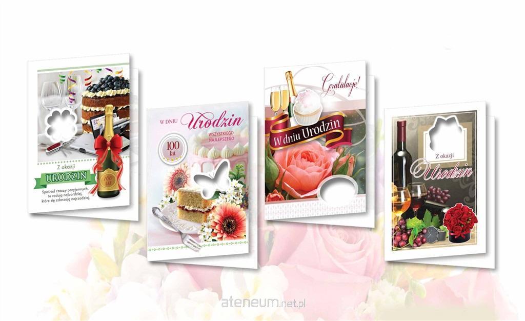Opakowanie zbiorcze 10 szt. Mix wzorów.Stylowe karnety z życzeniamiurodzinowymi wraz z dołączoną kopertą.