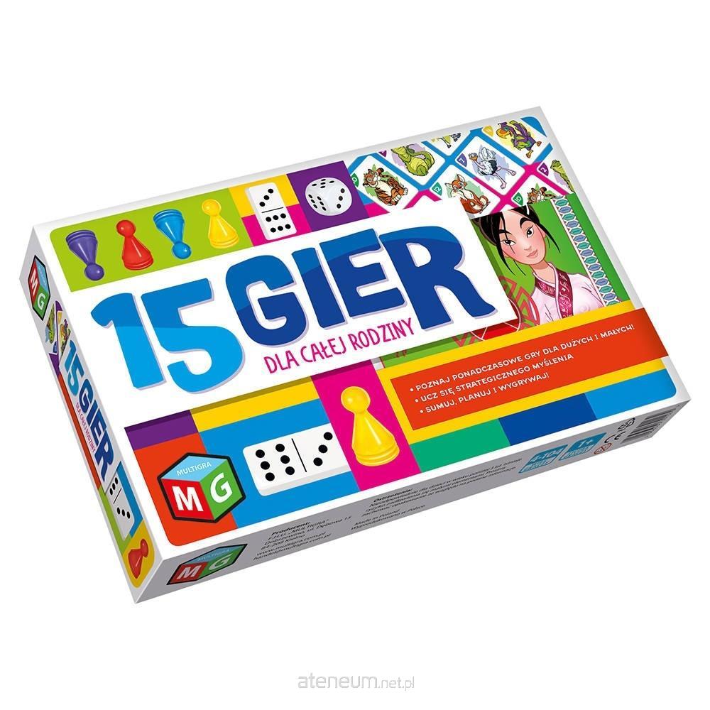 15 GIER oto zabawa dla całej rodziny. Poznaj najpopularniejsze gry świata! W instrukcji znajdziecie 5 wariantów gry młynek oraz 3 warianty ponadczasowego chińczyka. Talia kart do Piotrusia zapewni rozrywkę dużym i małym. Dzięki kościom domino, możecie poznać aż 6 różnych wariantów tej klasycznej gry.