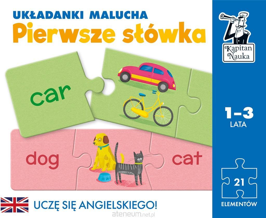 Wczesna nauka języka angielskiego Zestaw Angielski. Pierwsze słówka. Układanki malucha (13 lata) zawiera 7 trzyelementowych puzzli przedstawiających przedmioty, rośliny i zwierzęta, które otaczają małe dzieci, wraz z podpisami w języku angielskim. Podczas zabawy z puzzlami maluchy poznają najbliższe otoczenie, rozwijają wiedzę o świecie oraz zapamiętują angielskie słownictwo. Dzięki próbom dopasowywania do siebie elementów doskonalą również koordynację oko-ręka. Trening pamięci i koncentracji What is it? Where is a dog? What colour is this butterfly? Puzzle przedstawiające najbliższe otoczenie dziecka sprzyjają nauce języka angielskiego od podstaw, a także zachęcają do poznawania kolorów, figur i kształtów. Dzięki zabawie z układanką maluchy angażują wiele zmysłów oraz ćwiczą sprawność rąk i precyzję ruchów. Kolorowe i czytelne ilustracje Katarzyny Drewek-Wojtasik zostały tak dopracowane, aby dziecko mogło bez trudu rozpoznać przedstawione przez nie obiekty i skoncentrować się na nauce angielskiego, wzbogacając swój słownik. Puzzle zostały wykonane z grubej tektury, aby łatwo było je chwycić małym rączkom. Rozwój nauka angielskiego, koordynacja oko-ręka, koncentracja Ilustratorka Katarzyna Drewek-Wojtasik graficzka i ilustratorka książek dla dzieci i dla dorosłych, autorka rysunków publikowanych w prasie i internecie. W serii również: Układanki malucha. Kotki, pieski 13 lata Układanki malucha. Zwierzęta morskie 13 lata Układanki malucha. Liczymy warzywa i owoce 13 lata Układanki malucha. Na łące 13 lata Układanki malucha. Dżungla 13 lata Układanki malucha. Angielski Liczby 13 lata Układanki malucha. Angielski Kolory 13 lata Układanki malucha. Znajdź zwierzę 13 lata Układanki malucha. Kształty 13 lata Układanki malucha. Co pasuje? 13 lata