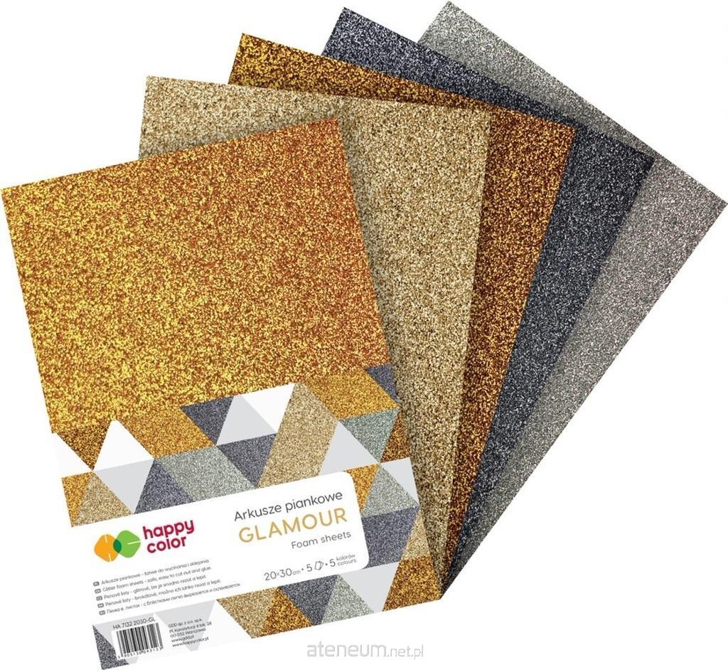 Arkusze piankowe A4 5szt brokat złote HAPPY COLOR