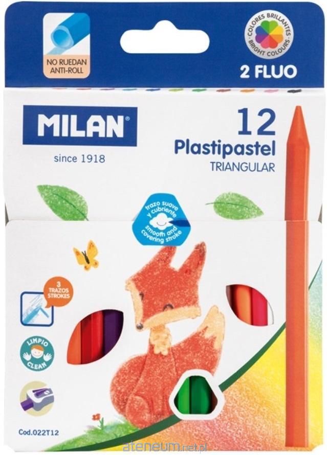 Kredki świecowe PLASTIPASTEL. 10 podstawowych kolorowów oraz 2 kredki fluo. Czyste i wytrzymałe, ich trójkątny kształt z zaokrąglonymi krawędziami sprawia, że idealnie pasują do rąk dzieci w wieku szkolnym i zapobiegają przesuwaniu się kredki po powierzchni roboczej. Nowa formuła: gładsza i bardziej kryjąca kreska. 3 różne pociągnięcia: cienkie kreski można narysować za pomocą końcówki kredki zaś grube kreski za pomocą tylnej części, a do zamalowywania dużych obszarów używamy całej ich długości. Kredka jest bezwonna i nie brudzi rąk ani tkanin. Można ją zatemperować za pomocą każdej temperówki. Miękka, umożliwia mieszanie kolorów. Kredki MILAN są zgodne z europejskimi i amerykańskimi normami bezpieczeństwa. Nie zawierają ftalanów, metali ciężkich i innych substancji toksycznych. Są bezpieczne dla dzieci. Rozmiar kredki: 12 x 0,8 cm. Rozmiar opakowania: 15,5 x 11 x 1 cm.