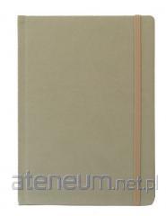 Format A5 (154x210 mm). 240 stron. Liniatura kropki 5x5 mm. Papier z recyclingu Lessebo Recycled w delikatnym odcieniu kości słoniowej. Gramatura 80 gsm Elastyczna, szyta oprawa. Twarda okładka z włoskiego poliuretanu, zapewniającego wysoką wytrzymałość na zużycie i zniszczenie. Pionowa gumka zamykająca zabezpieczy notatnik przed spontanicznym otwieraniem się, a zaokrąglone rogi gwarantują jego bezpieczne użytkowanie i zapewnią piękny wygląd na dłużej. Koperta na luźne karteczki. Wstążka w dopasowanym kolorze.