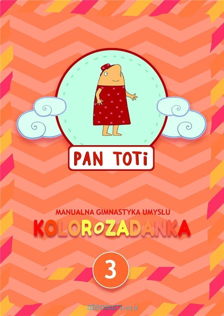 Publikacja zawiera: kolorowanki, labirynty, rysunki po kropkach, zagadki, szlaczki. Ulubiony bohater zaprasza przedszkolaków do manualnej gimnastyki rozwijającej również umysły. Na dwudziestu czterech stronach znajdują się kolorowanki, zadania po śladach, szlaczki, zgadywanki i labirynty. Szlaczki zostały oryginalnie wkomponowane w kolorowanki, by ćwiczyć umiejętności manualne potrzebne do osiągnięcia gotowości szkolnej. Seria edukacyjna Pan Toti zachwyca dzieci zadziwiającymi przygodami i mnóstwem ilustracji, natomiast rodzice doceniają jej edukacyjno-wychowawczy charakter. Wydawca Fundacja Pan Toti i Przyjaciele popularyzuje polskiego bohatera książek i bajek Pana Totiego oraz promuje czytelnictwo wśród dzieci poprzez działalność wydawniczą, spotkania autorskie i warsztaty twórcze z Panem Totim. Pan Toti uczy, wychowuje, a przede wszystkim bawi!