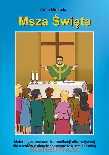 "Msza Święta" - materiały edukacyjne do katechezy dla uczniów z umiarkowaną i znaczną niepełnosprawnością intelektualną Msza Święta to kolejna po Spotykam Jezusa publikacja przeznaczona dla uczniów z niepełnosprawnością intelektualną w stopniu umiarkowanym i znacznym oraz osób posługujących się alternatywnymi i wspomagającymi metodami komunikacji. Proste ilustracje i opisy dotyczące poszczególnych elementów Mszy Świętej pozwalają uczniom poznać przebieg Eucharystii. Znaki komunikacji alternatywnej PCS pomagają uporządkować pojęcia bazowe związane z uczestniczeniem w liturgii. Książka wprowadza do świadomego udziału we Mszy Świętej. Może być wykorzystana na lekcjach, jak również w kościele, gdzie pomoże uczniowi śledzić przebieg liturgii. Zawarte w niej treści z czasem powinny być rozszerzane i pogłębiane w miarę nabywania przez uczniów wiedzy i umiejętności. Książka - przewodnik po Mszy Świętej dla uczniów z umiarkowaną i znaczną niepełnosprawnością intelektualną. Może być używany podczas lekcji religii, a także w domu i w kościele. Ilustracje dostosowane do możliwości percepcyjnych osób z niepełnosprawnością intelektualną, tekst łatwy do czytania oraz znaki komunikacji alternatywnej PCS (Picture Communication Symbols) pozwalają uczniom poznać poszczególne części Mszy Świętej.